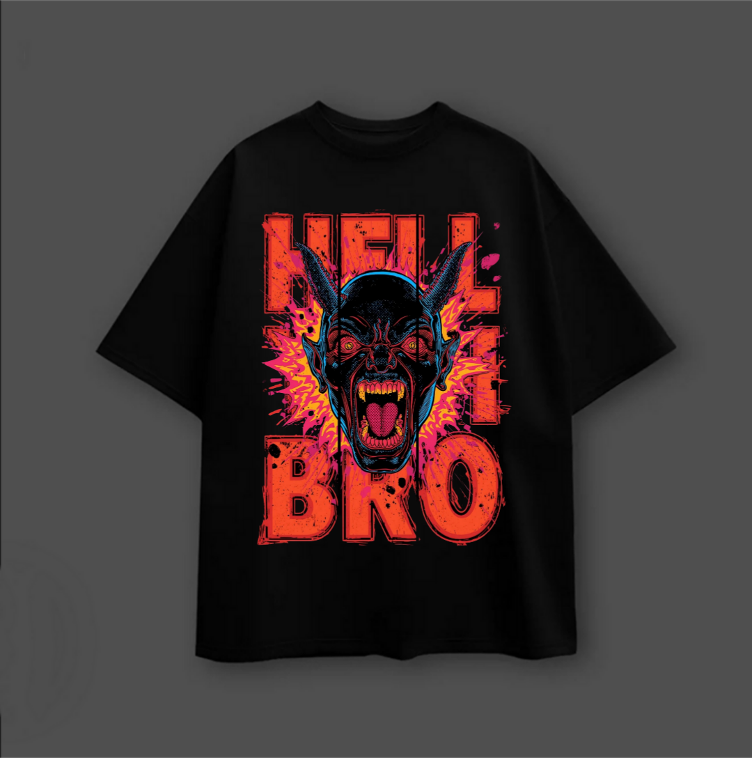 Dripping in fire. Roaring with power. The HELL BRO Tee is perfect for those who live on the edge. Made from 100% heavyweight looper cotton, this oversized tee is tough, comfortable, and designed to stand out. Cold wash inside-out, hang dry to keep it fierce.